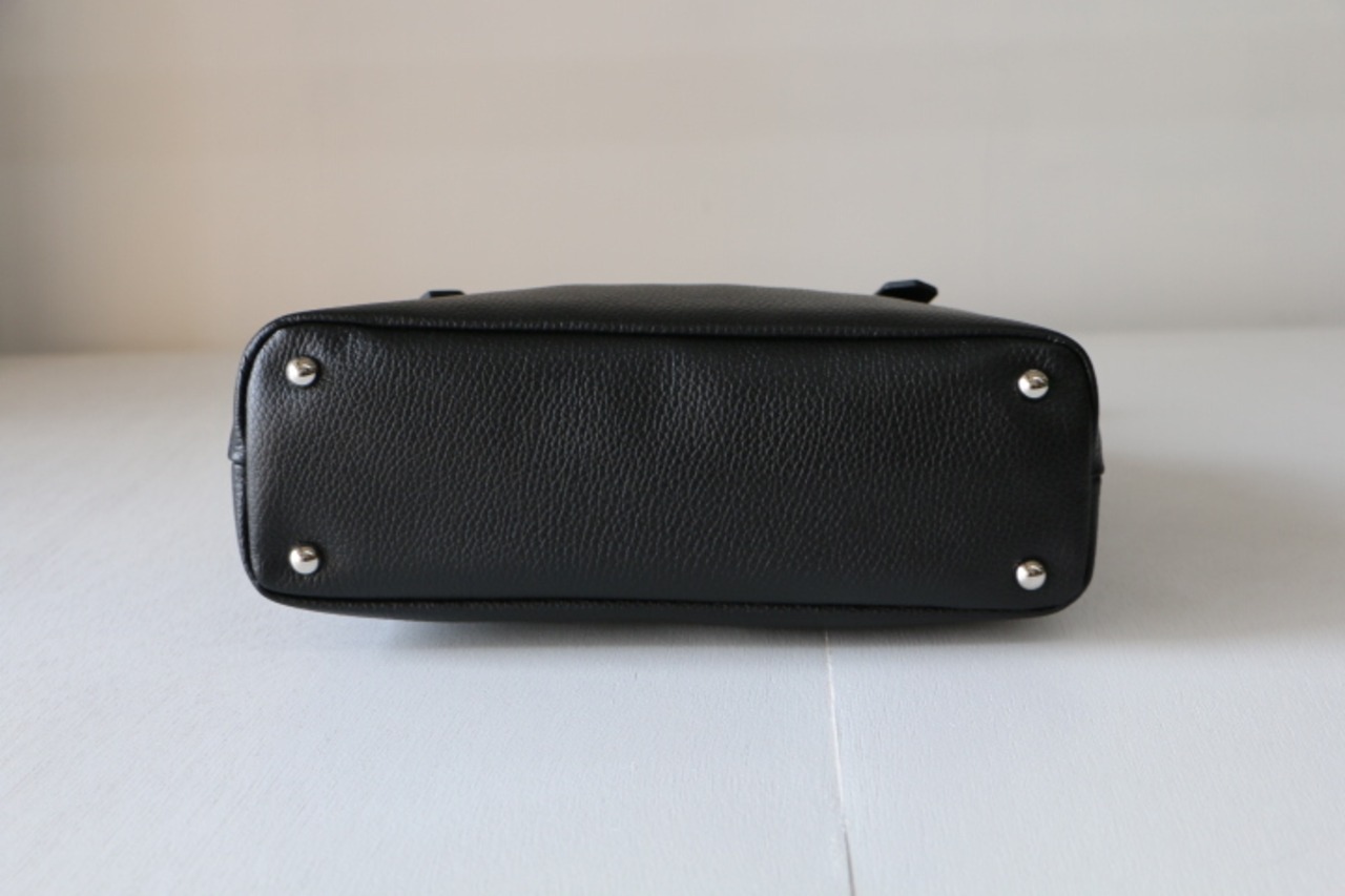 ミニレザートートバッグ カツユキコダマ オリジナルシルバー釦使用 BLK