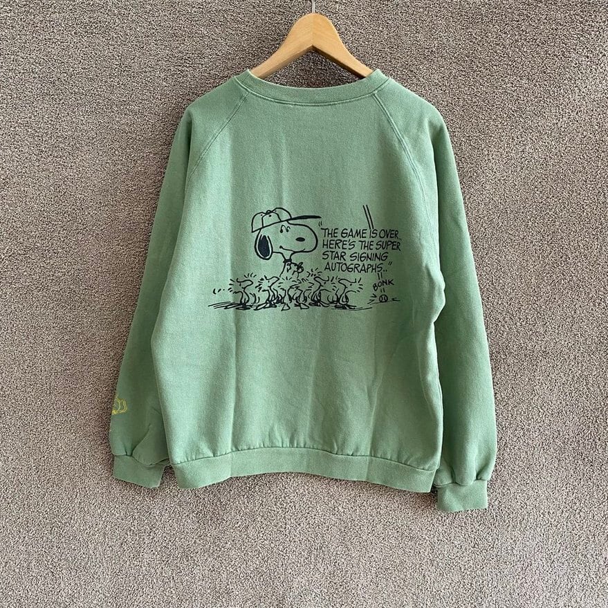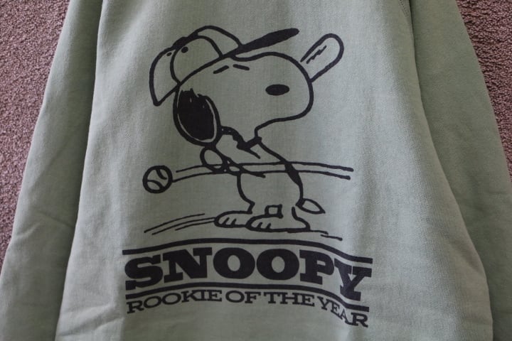 カラーごとに異なるスポーツに挑戦するスヌーピーが愛らしい、キャッチーなフロントプリント。