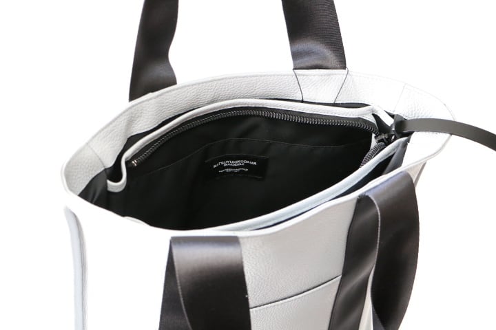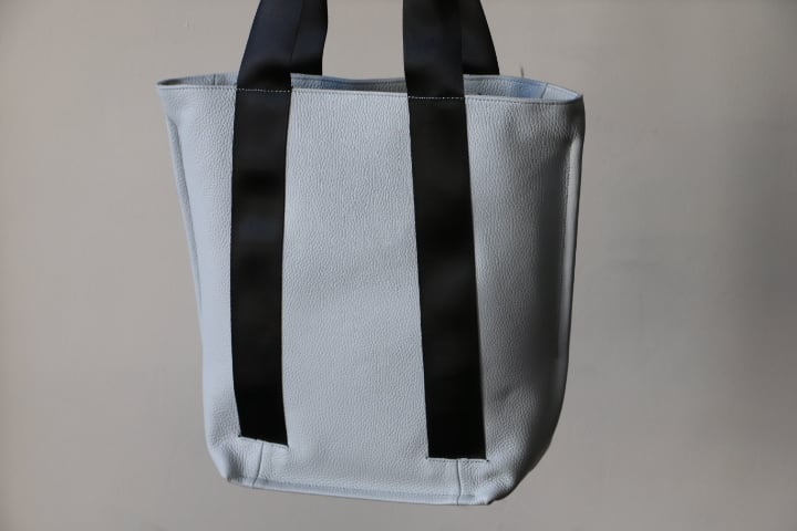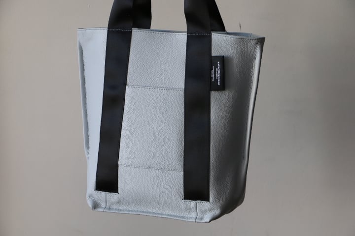 イタリア製のシュリンクレザーで作成したON・OFF対応の縦型トートバッグです。