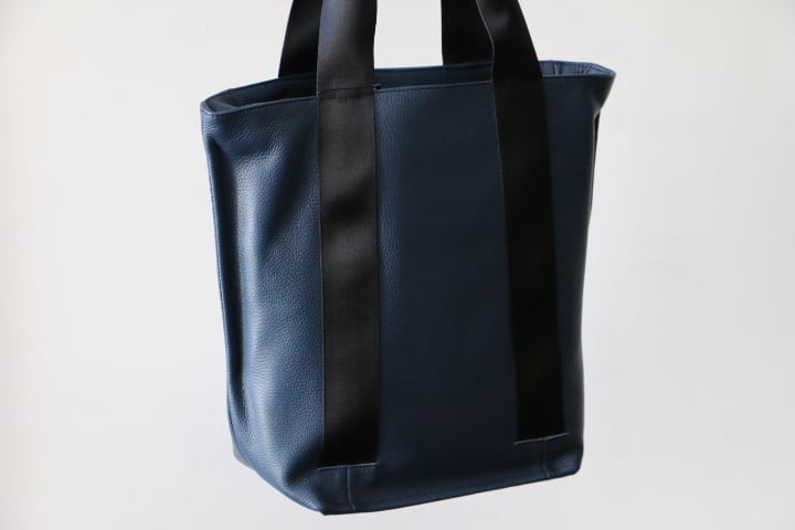 イタリア製のシュリンクレザーで作成したON・OFF対応の縦型トートバッグです。