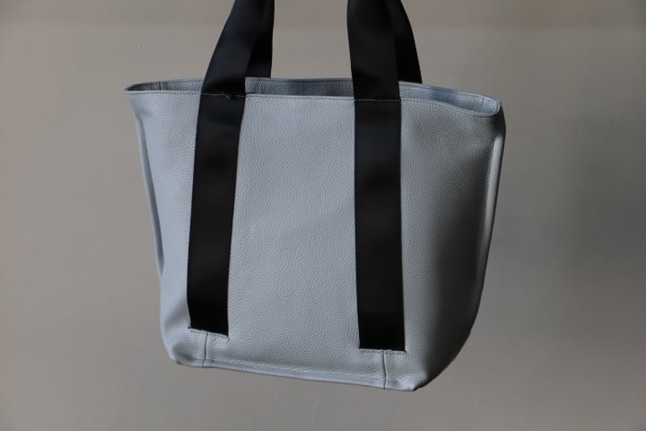 イタリア製のシュリンクレザーで作成したON・OFF対応の横型トートバッグです。