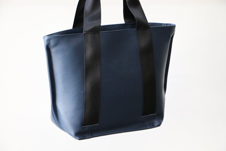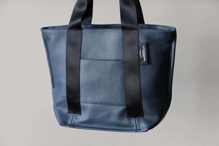 イタリア製のシュリンクレザーで作成したON・OFF対応の横型トートバッグです。