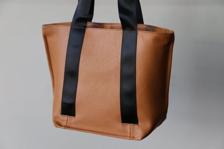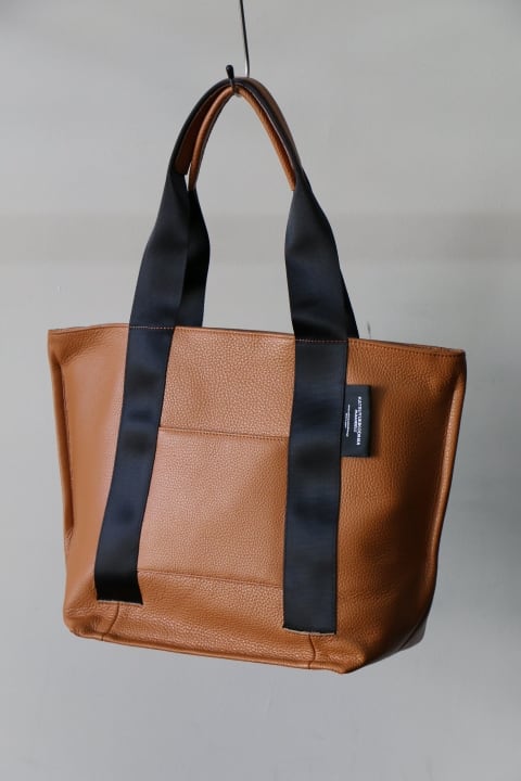 イタリア製のシュリンクレザーで作成したON・OFF対応の横型トートバッグです。