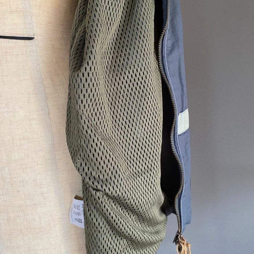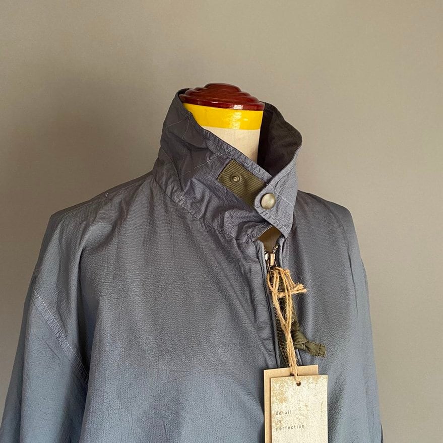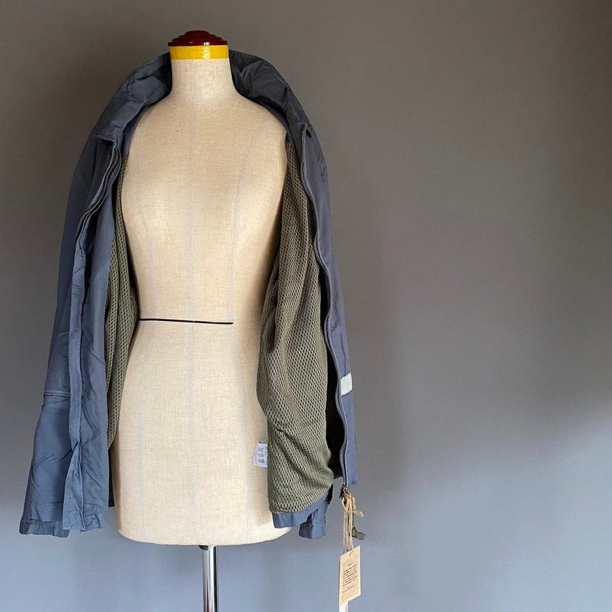 表地にナイロンリップストップ、裏地にメッシュ素材を使用し、製品染めで仕上げたブルゾンです。裏地のメッシュには排湿・吸汗機能があり、着用時もさらっとした快適さを保ちます。コスト面から一度は見送っていた製品染めですが、デザート時代から続くdipの定番加工として、やはり外せない工程。今回はウエストにリフレクター素材も使用しました。着用を重ねることで、製品染め特有の表情が徐々に深まり、時間とともに自分だけの一着へと育っていきます。