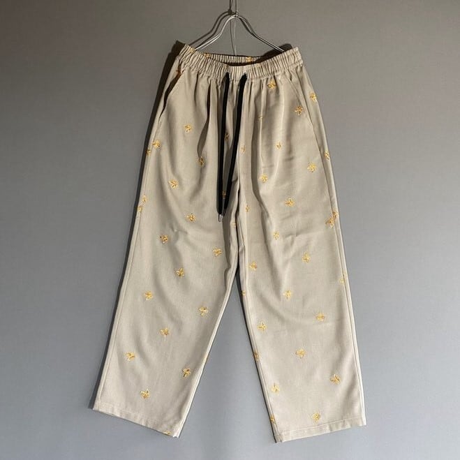 Embroidery easy pants【Revo.】/バタフライ(蝶)BEIGE