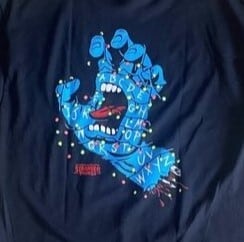 SANTA CRUZとSTRANGER THINGSまさかのコラボサンタクルーズ x ストレンジャー・シングス スクリーミング・ライツのアートワークが、クリスマスライトに 多色で光るインクでプリント